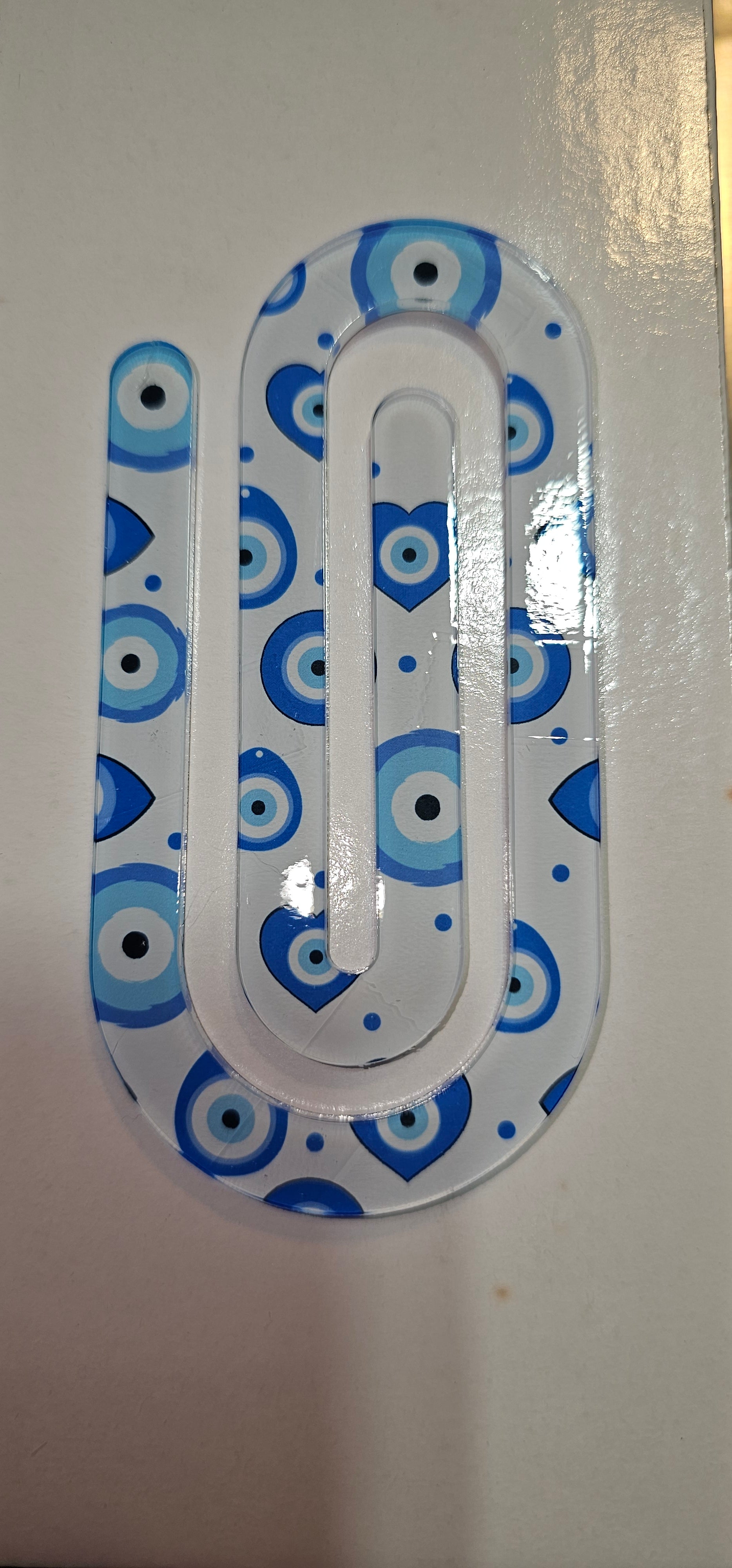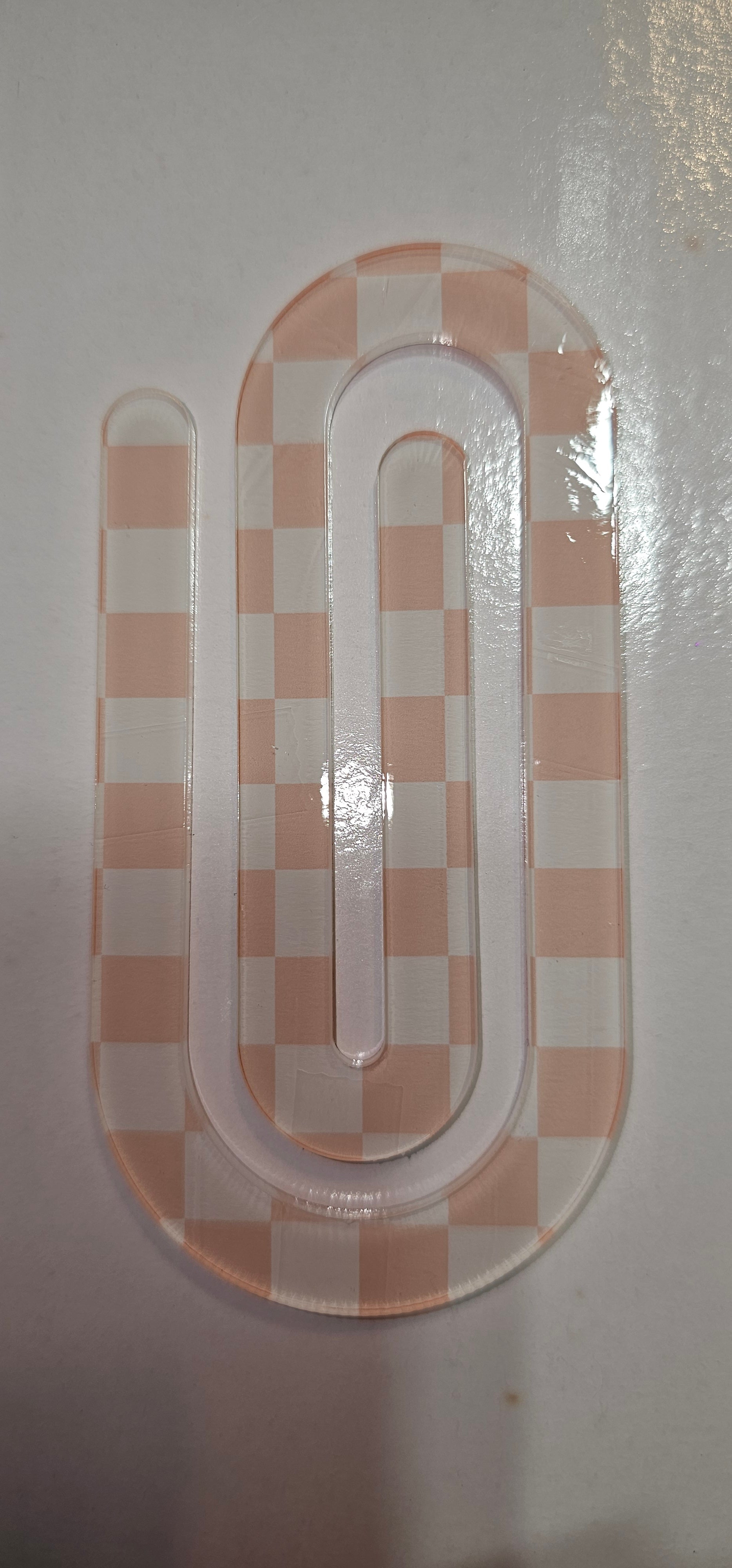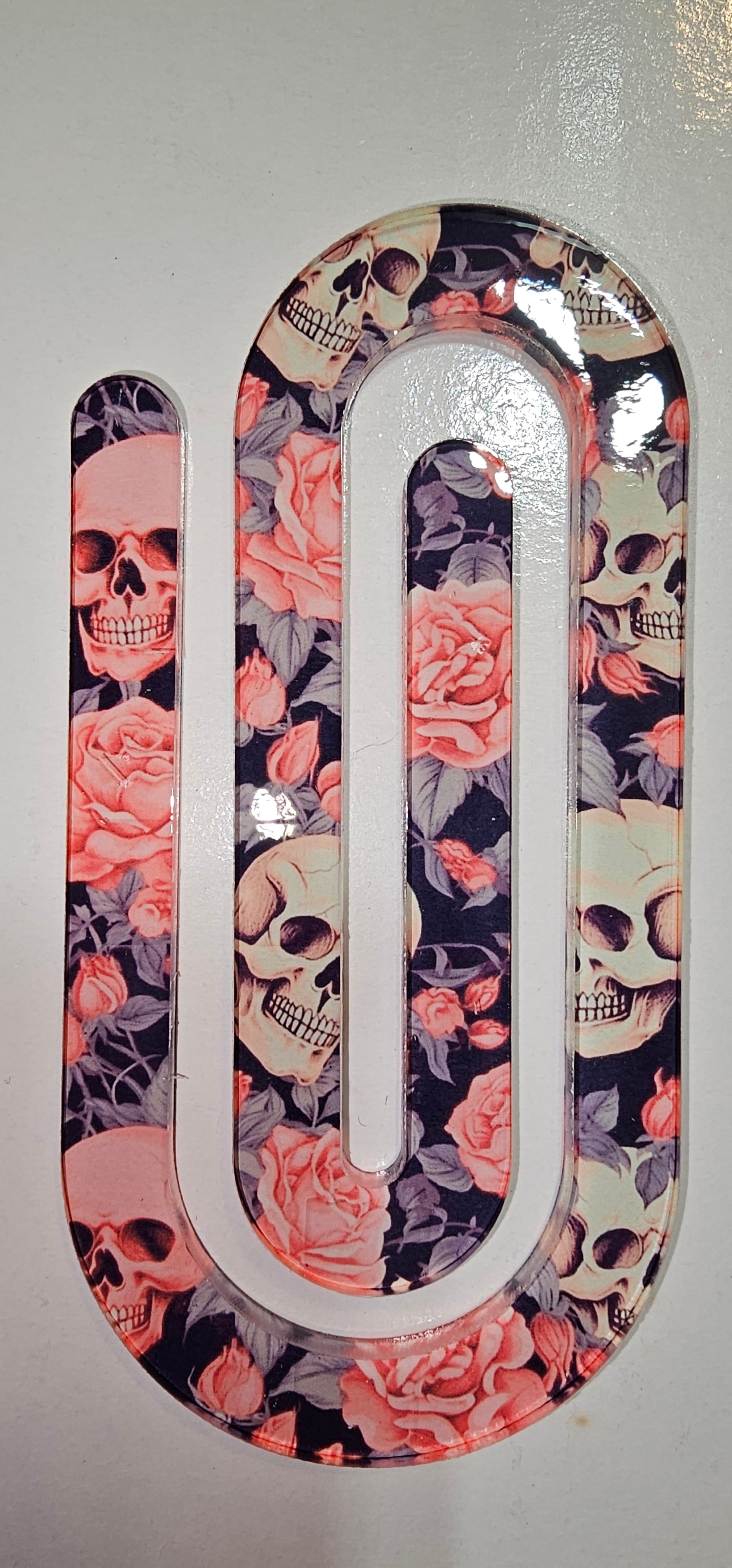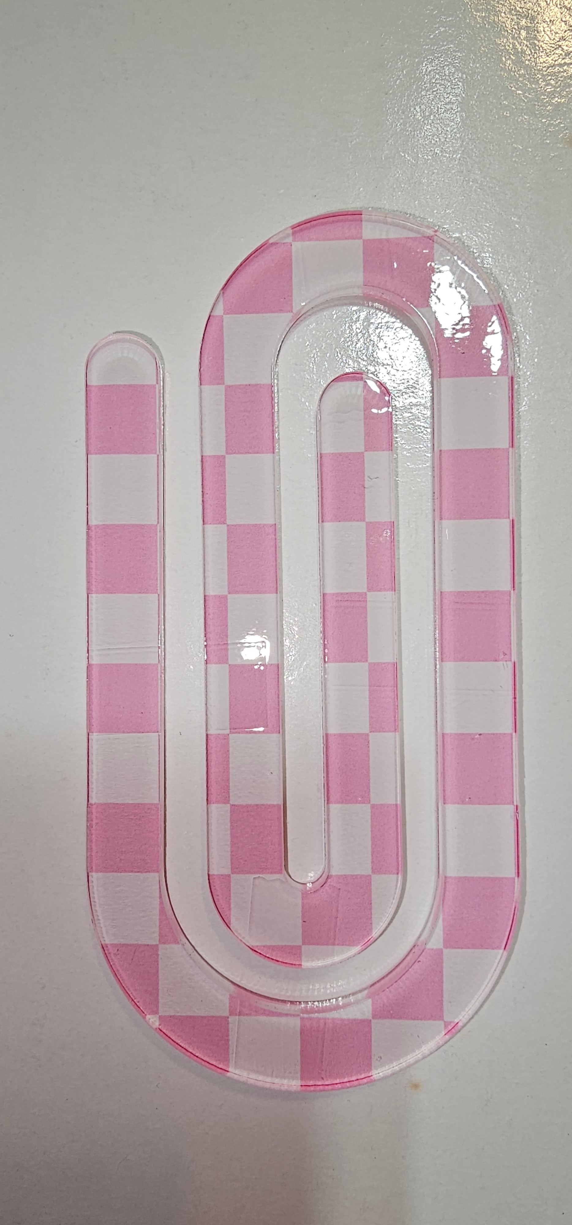 Acrylic Jumbo Paperclip with Sublimation Design. 4 inches by 2 inches.